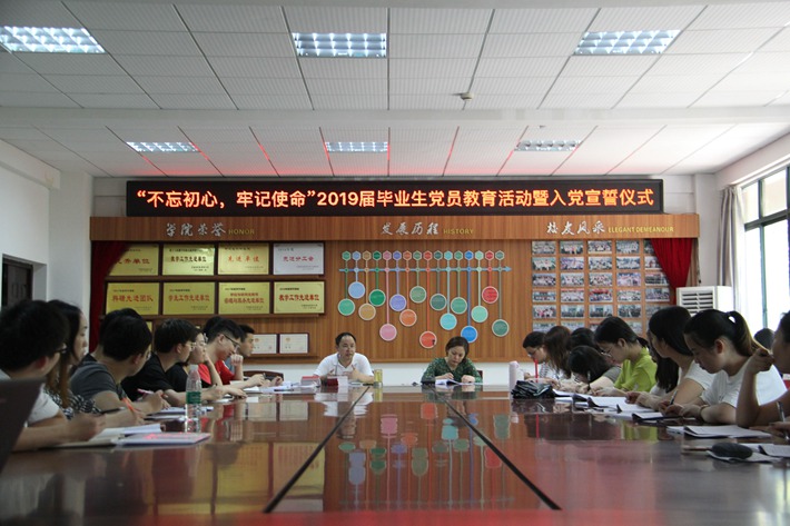 6月4日,食品学院党委于神农楼二楼会议室举行2019届毕业生党员教育大会暨入党宣誓仪式。院党委书记李婷、副书记潘晓杰,各学生党支部书记,新发展的15名党员及全体毕业生党员参加了本次教育活动。大会由潘晓杰主持。