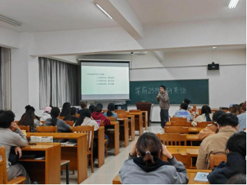 2025年10月31日晚,我院联合学府考研在神农楼B403举行2023级考研英语讲座,本次讲座特邀学府考研资深英语教师任伟伟主讲。