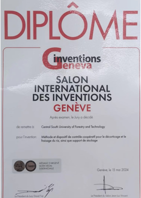 在今年4月17-21日举行的第49届日内瓦国际发明展上,我院参赛项目“一种砻谷碾米协同控制方法、装置及存储介质(Rice Hulling and Rice Milling Cooperative Control Method And Device, And Storage Medium)”一举斩获银奖。