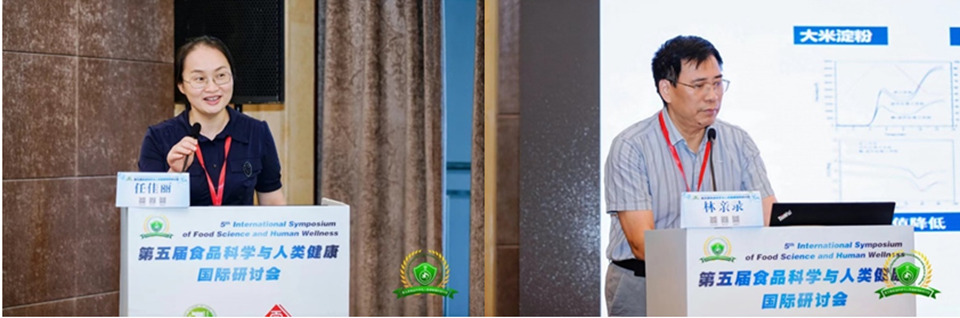 食品科学与工程学院院长任佳丽教授就“红汁乳菇多糖结构解析及抗癌活性研究”做报告。稻谷及副产物深加工国家工程研究中心主任林亲录教授就“稻米全谷物健康功效与品质改善”做报告。