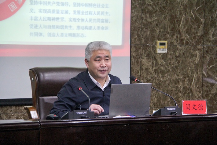 闫文德以“在中国式现代化进程中彰显中南林担当与作为” 为题,从二十大报告原文切入,深入解读了中国式现代化的丰富内涵和本质要求,系统回答了“为什么是中国式现代化”、“中国式现代化新在何处” 、“中国现代化将如何开辟人类新路”三大问题。他强调,二十大报告是历史里程碑式的报告,标志着中国进入了全面建设社会主义现代化的新阶段,将对中国未来5年产生决定性影响,对中国未来30年发展产生深远影响,甚至对世界产生重要影响。