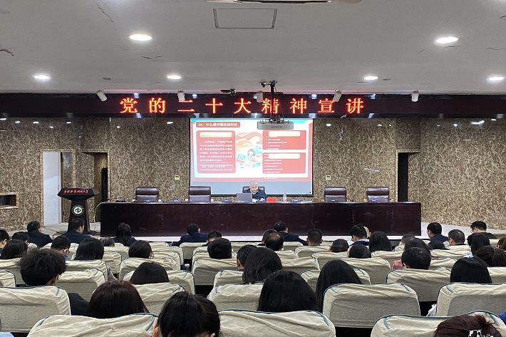 3月10日上午,副校长闫文德在东园图书馆报告厅讲授了“学习贯彻二十大精神”主题党课。食品科学与工程学院、理学院班子成员和教师代表,研究生院、科技处、社科处全体职工到场听课。