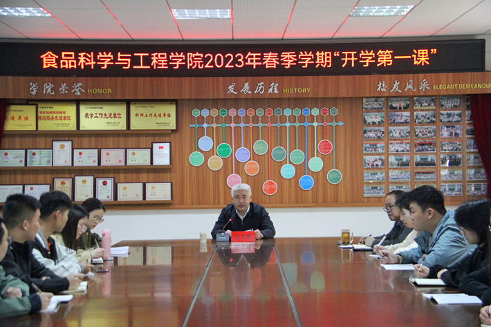 为深入学习贯彻党的二十大精神,落实立德树人根本任务,提升学生科学防疫意识。3月10日上午,闫文德副校长在神农楼A206为食院学子开讲“开学第一课”,活动由学院党委副书记潘晓杰主持,学院辅导员及学生代表参加。