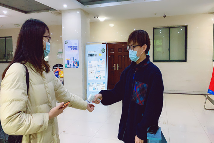 疫情期间,为确保教学场所的绝对安全,我院于神农楼一楼大厅设立了专门的学生干部及党员值班台。值班人员需对进入神农楼的人员测温,并禁止不戴口罩、体温异常的人员入内。