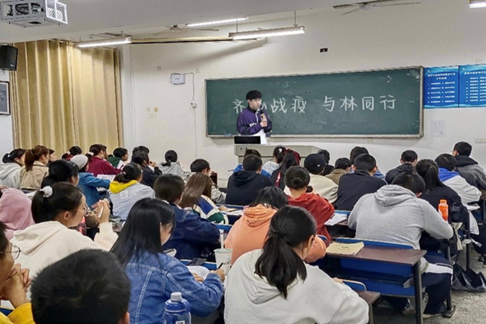 学院组织各班召开“齐心战疫,与林同行”疫情防控主题班会。由班长带领同学们学习倡议书内容。并对疫情期间的个人防护、每日健康打卡、校园出入管理、请假审批制度、疫苗接种、活动须知等相关防疫要求进行了集中学习。