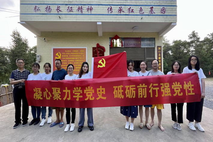 实践团在县市场监督管理局成员陪同下前往花园镇西中红军烈士纪念园,参观洞口县党性教育基地展馆,瞻仰西中红军烈士墓,观看了《四代守墓护英灵 一往深情感党恩》专题片,红色精神,催人奋进。在西中红军烈士墓前,党员重温入党誓词,并表达对革命烈士的深切缅怀和崇高敬意。实践团成员纷纷表示要学好专业知识,为乡村振兴、国家富强贡献出自己的力量。