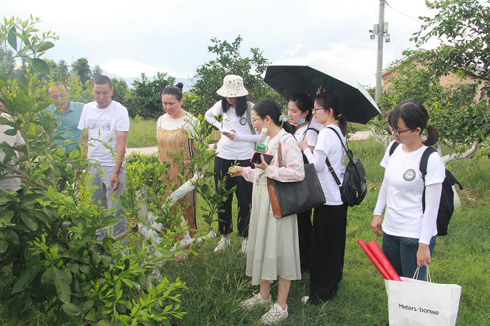 食品科学与工程学院杨英副教授、任康梓博士带领学生先后在花园镇西中红军烈士纪念园、斜口雪峰蜜桔果园基地、毛铺雪峰蜜桔果园基地、壹品洞口(湖南农佳好伙计农业科技发展有限公司)、湖南国饼世家食品有限公司、洞口县园艺场满妹子雪峰蜜桔种植基地、湖南洞口辣妹子食品有限公司、湖南省亿丰农林牧科技有限公司、洞口香泉食品有限公司、月溪镇禾梨村、古楼乡古楼村等地调研。每到一处,实践团都实地查看具体情况、询问有关需求,并与各基地、企业负责人进行沟通交流,了解各地在产业发展过程中遇到的困难和问题,并根据自己的专业知识提出建议。