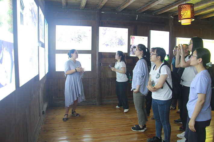 古楼云雾茶的种茶历史可以追溯到公元前567年的隋唐时代,洞口县古楼村把发展茶文化列在乡村文化建设的首位,并与乡村振兴有机结合,做强乡村文化旅游产业。如今,该村已依托湖南古楼雪峰云雾茶有限公司建成古楼云雾茶文化历史馆,将古楼茶文化生态园打造成了国家3A级景区和邵阳市中小学生研学旅行基地。实践团与湖南古楼雪峰云雾茶有限公司董事长肖冬红探讨了该公司研发的绿茶米粉的品质提升问题。杨英副教授认为,在茶文化引领下开发茶食品向下游延伸茶产业链,有望走出一条农旅、研学、生产有机结合的富农之路。