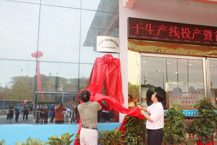 在投产仪式上,林亲录院长和天下洞庭粮油集团董事长王伟宜先生对公司成为稻谷及副产物深加工国家工程实验室技术转化合作单位、中南林业科技大学食品科技工程学院产学研实习基地进行了揭牌。