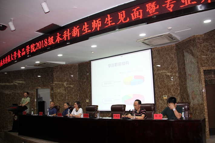 会议由学院党委书记李婷主持,院长林亲录致欢迎辞并简要介绍了学院发展历程、专业特色、师资力量、科研及创新平台等情况。之后,主管本科生教学工作的周文化副院长对学院本科专业设置、课程安排以及大二专业分流的依据、原则、方法进行了详细说明。
