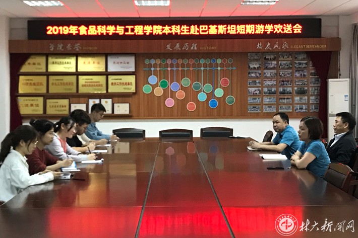 5月14日下午,学院在神农楼二楼会议室举行小型欢送会,第一批前往巴基斯坦UMT大学的6名学生将开启为期20天的研学之旅,学院党委书记李婷、院长林亲录、副书记潘晓杰和赴巴学生参加了欢送会。会议由李婷主持。