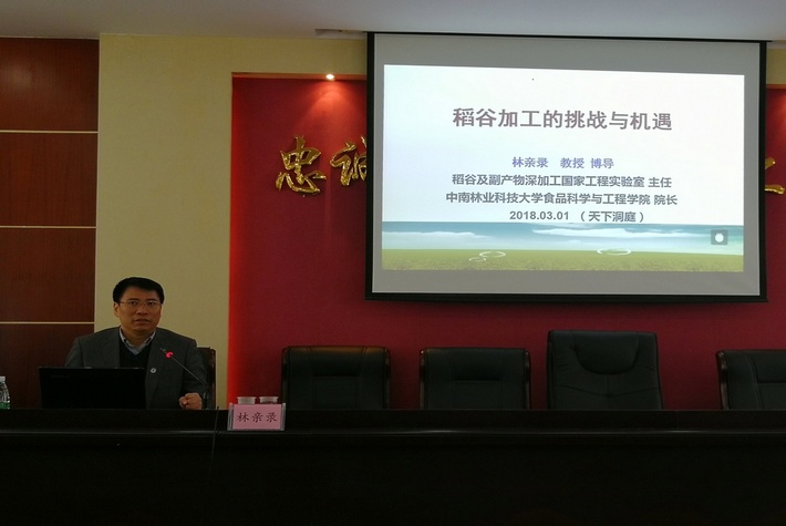 考察组一行人受到了热情接待。应天下洞庭食品有限公司领导盛情邀请,林亲录教授以 “稻谷加工的挑战与机遇”为题为公司员工作精彩报告。