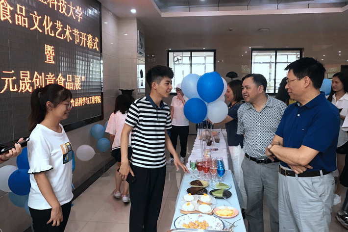 5月15日中午,食品科学与工程学院同学们心盼已久的第九届食品文化艺术节开幕式暨“元晟”大学生创意食品作品展在神农楼前拉开帷幕。校团委书记李凯,学生工作部副部长李健林,食品科学与工程学院院长、博士生导师林亲录教授,学院党委书记李婷,党委副书记潘晓杰及部分师生出席了本次开幕式。
