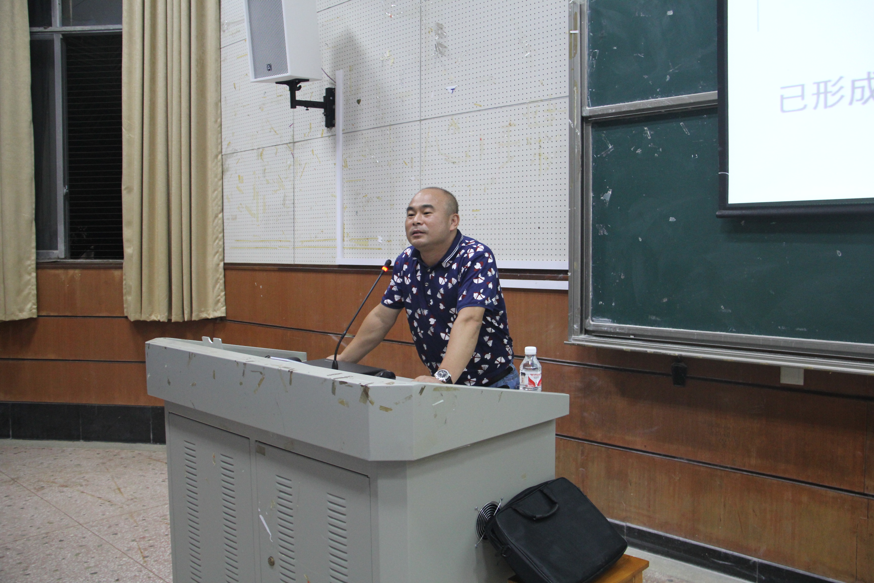 周文化副院长与教师代表陆俊老师随后做出讲话,其中周文化对将要进入大学生活的学生们提出“六个感知”,从教室到实验室到寝室,他希望新生们能摆脱中学时期的学习生活模式,全身心地感知大学生活;陆俊则以教师的角度,对学生们的学习生活提出殷切希望。