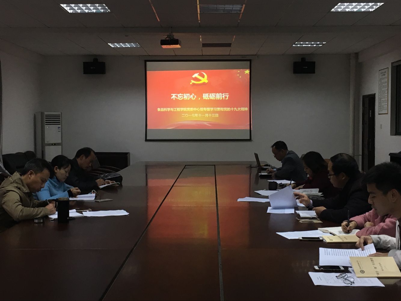 11月13日下午,学院党委中心组在学院会议室举行“不忘初心,砥砺前行——学习党的十九大会议精神” 专题学习会。学院党委书记李婷、党委副书记潘晓杰、副院长周文化及各党支部书记参加学习会。学习会由李婷主持。