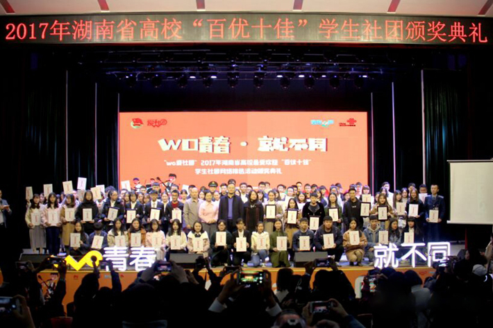 11月24日下午,由共青团湖南省委、湖南省学联主办的“WO爱社团”2017年度湖南省高校“百优十佳”学生社团网络推选活动颁奖典礼在我校举行。我院食品安全营养协会、幽兰茶文化协会两个社团荣获2017年湖南省高校“百优社团”,此次活动共有100余所高校的900多个社团参与。经过网络投票和专家评审,最终,我校六个社团荣获“百优社团”。