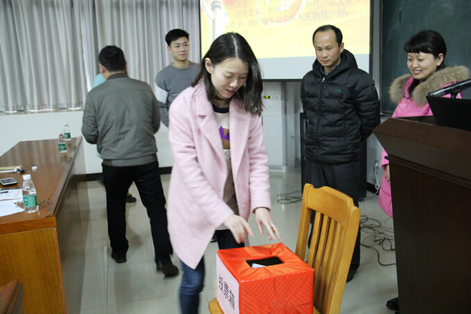 报告结束后,工作人员宣读了《关于同意食品科学与工程学院党委(改选)选举的批复》,并按照规定程序,经过到会46名正式党员无记名投票,差额选举产生了李婷、杨涛、周文化、钟海雁、潘晓杰等5名同志为食品科学与工程学院党委新一任委员会委员。