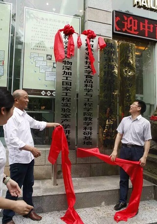 57日上午,食品科学与工程学院、稻谷及副产品深加工国家工程实验室与湖南海联粮油科学技术有限公司共建的教学科研基地、产学研基地揭牌仪式在株洲顺利举行。我院院长林亲录、海联粮科公司董事长周和平先生共同为基地揭牌,我院副院长周文化、副书记李婷以及部分教师、学生代表共同见证了此次揭牌仪式。