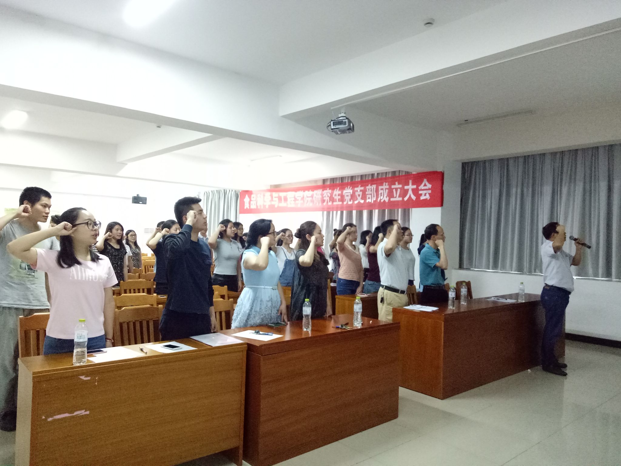 在全体党员重温入党誓词后,潘晓杰宣布食品学院研究生党支部正式成立。
