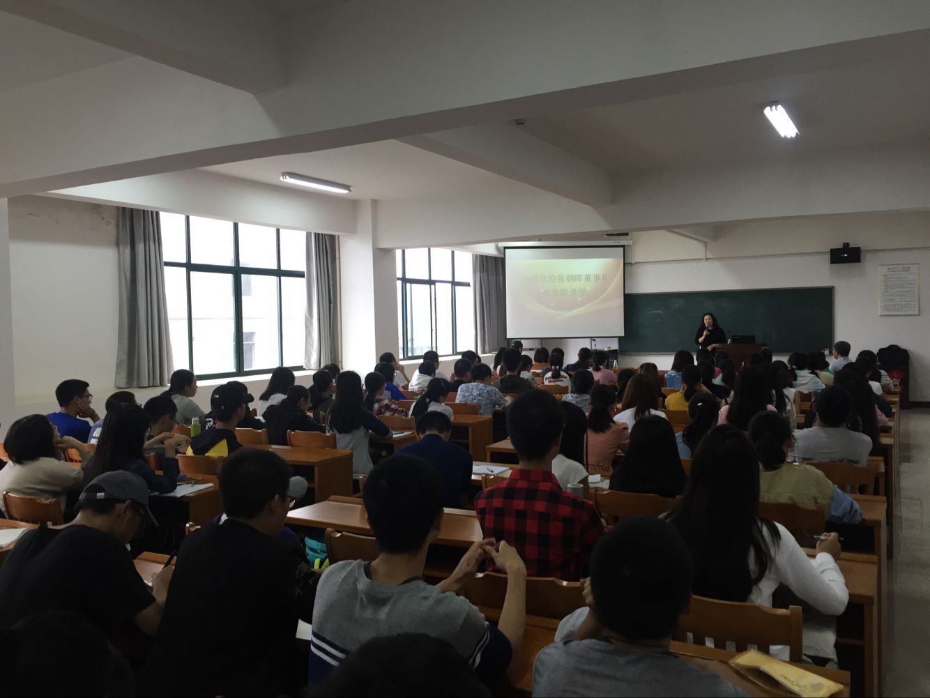 讲座的最后是提问互动环节,当有人问到张董事是怎样做到在长期每天四个小时的阅读时,她给出“学习不是为了工作需求而学习,而是为了兴趣而学习”的解释。同时,她补充到无论在什么岗位,都应相信自己会成功,厚积薄发,成就自我。至此,本次讲座在热烈的掌声中圆满结束。