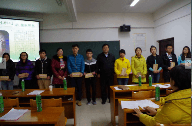 在湘粮奖学金颁奖结束后,陆俊老师进行了2015年学院学风建设整体情况汇报;王玉璇老师进行了2015届毕业生就业情况汇报;何志祥书记宣读了2015年学院学生工作光荣榜。与会领导对获奖学生及老师颁发了奖状。