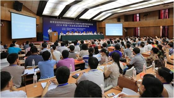 由教育部高等学校食品科学与工程类专业教学指导委员会主办,华南农业大学承办的“食品科学与工程类教学指导委员会2014年第二次会议暨教学研讨会”于2014年11月14日~15日在广州燕岭大厦成功召开。会议由华南农业大学食品学院院长孙远明教授主持。华南农业大学副校长咸春龙教授、广东省教育厅副巡视员胡振敏同志、教学指导委员会主任、江南大学副校长金征宇教授出席大会并致辞,来自全国108所高校食品学院的院长、系主任、专业负责人、专任教师,以及相关政府机关、事业单位和企业的技术人员,共计350余人济济一堂。我校食品科学与工程学院周文化副院长、李安平老师、黄亮老师等三位教师全程参加了会议。