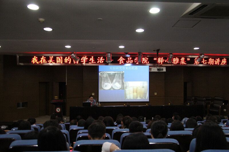 5月18日晚7点,食品科学与工程学院第七期大学生释心雅集——《我在美国的留学生活》专题讲座于图书馆报告厅如期举行。主讲人杨涛老师为我们带来了一场别开生面、引人深思的,集专业性、科学性、研究性为一体的专题讲座。院团委书记邓颖老师和学院部分学生代表共200余人聆听了此次讲座。讲座由院学生会主席顾懿笛同学主持。
