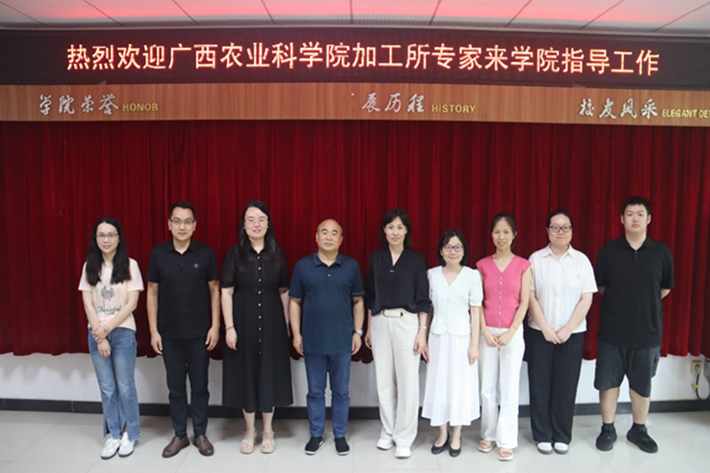 6月13日下午,广西农业科学院农产品加工研究所张娥珍研究员一行三人访问我院,就农林产品加工及副产物高值化利用等前沿技术进行考察交流,并洽谈合作。学院党委书记周文化、副院长张琳及农产品加工及贮藏工程学科团队教师代表参加座谈。
