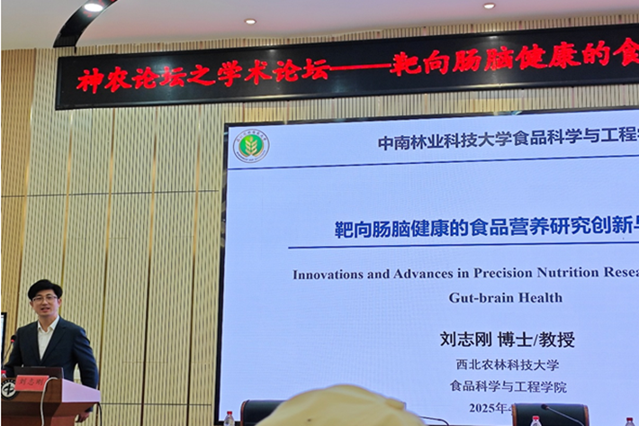 刘志刚教授以“靶向肠脑健康的食品营养研究创新与进展”为题,从“肠脑轴”科学机制切入,分享了团队对于间歇性禁食改善阿尔兹海默症相关认知功能障碍以及肠易激综合征中肠脑机制的研究,深入剖析食品营养在健康干预中的前沿应用:阐释肠道微生物通过肠脑轴影响认知、情绪及神经退行性疾病的分子机制(以阿尔兹海默症的认知功能改善为例);介绍团队开展的靶向肠脑健康的功能食品研发实例,如改善阿尔茨海默症患者认知功能的特医食品、缓解焦虑的发酵乳制品,低Met植物蛋白饮料等。刘教授指出:“食品不仅是能量来源,更是健康的调控者。未来食品科学的核心,在于通过精准营养设计实现疾病预防与健康提升。”