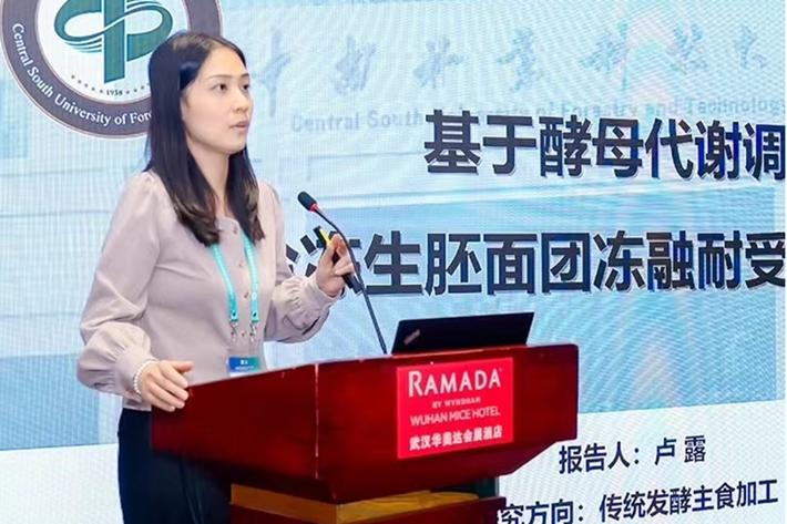 卢露副教授在小麦及面制品新质加工产业发展分论坛中以《基于酵母代谢调控的冷冻面团冻融耐受性提升策略》为题作专题报告,从酵母层面,提升冷冻面团的冻融耐受性并提出破解冷冻面团加工瓶颈的新方式,为面制品产业提质增效提供了技术支撑。