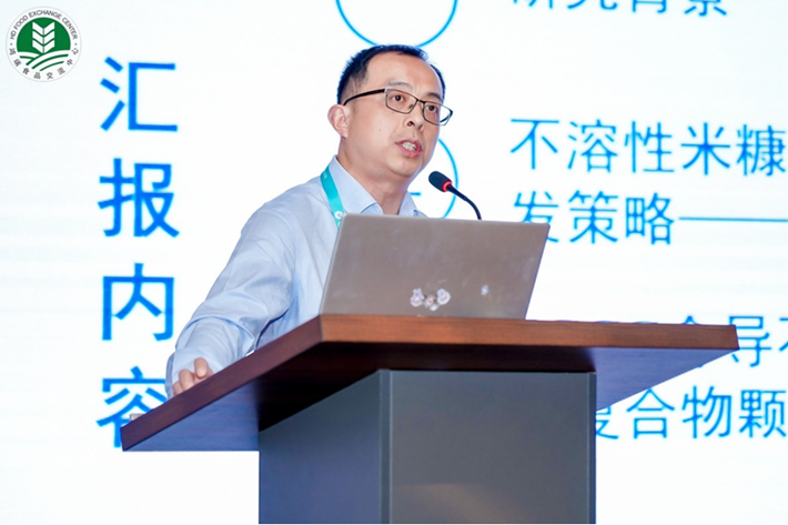 吴伟副主任在“粮食营养与健康产业发展科技”分论坛发表题为《机械预处理和EGCG介导不溶性米糠蛋白-多糖-酚天然复合物调控乳液稳定性的机制研究》的报告,介绍了提高乳液稳定性的创新技术以及协同增效作用提高米糠营养价值。