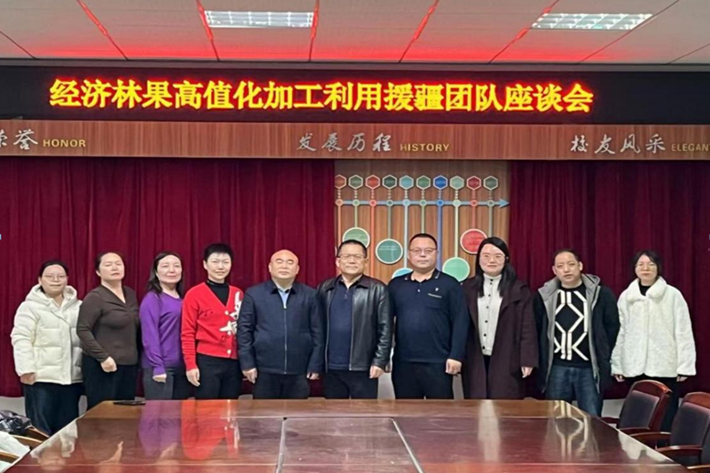 2024年12月10日,精河县枸杞产业发展中心副主任孙天罡等一行人莅临中南林业科技大学食品科学与工程学院交流指导工作,并就经济林果高值化加工利用援疆团队工作召开座谈会。学院党委书记周文化教授、副院长张琳副教授、曹清明教授等教师代表和研究生代共同参加会。