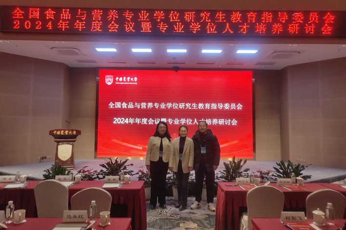 2024年12月23-24日,我院院长任佳丽教授、副院长张琳教授以及食品与营养专业学位硕士点负责人陆俊教授受邀参加了在北京举行的全国食品与营养专业学位研究生教育指导委员会2024年年度会议及专业学位人才培养研讨会。会议期间,全国食品与营养专业学位研究生教育指导委员会领导及专家围绕食品营养与健康学科建设、专业学位研究生教育高质量发展以及培养爱农知农高质量人才等主题做了精彩的专题报告。