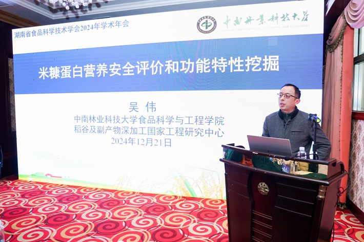 我院作为承办单位之一,积极参与了本次盛会,并在多个分会场展示了我院师生的科研成果和学术风采。在米制食品分会场,稻谷及副产物深加工国家工程研究中心副主任吴伟教授作了题为“米糠蛋白营养安全评价和功能特性挖掘”的报告,深入介绍了米糠蛋白在营养安全及功能特性方面的最新研究进展;在传统食品的绿色加工与智能制造分会场中,张佳男副研究员作了题为“呈味肽美拉德反应协同增鲜强化分子机制”的报告,系统阐述了呈味肽在美拉德反应中的鲜味提升机制。