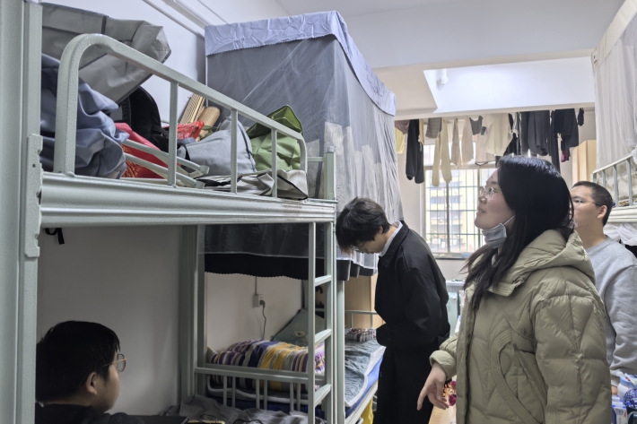 走访过程中,学院老师与同学们亲切交谈,了解学生假期动态以及新学期规划,并叮嘱同学们要尽快调整状态、设立新学期目标。此外,学院老师提醒同学们清理宿舍卫生,以良好的寝室风貌迎接新学期学习与生活。老师们还仔细查看了宿舍的安全情况,重点排查私自外宿、使用大功率电器等违规行为,对于宿舍充电器、插排摆放存在的安全风险,学院老师现场对学生进行用电安全教育,强化安全防范意识。