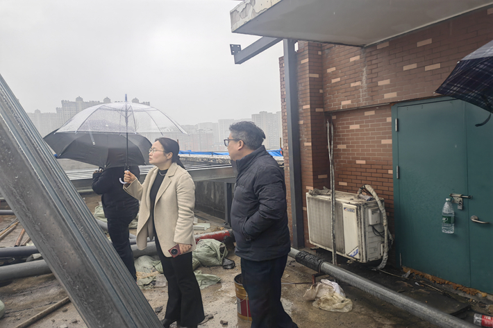 为高质量推进神农楼屋顶外墙渗水整治及室内改造工程,强化建设质量监督与施工安全管理,3月12日上午,学院院长任佳丽、党委书记周文化率队深入施工现场,对屋顶、实验室等重点改造区域开展专项巡查,现场督导工程进度,排查安全隐患,压实质量安全责任。