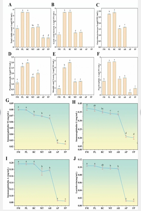 生鲜牛乳营养丰富,是所有哺乳动物新生儿的生命基础,是自然界设计的唯一完整食物。从这个意义上讲,牛乳是人类饮食中蛋白质和微量营养素的主要来源之一,可为婴幼儿提供生长发育所需的营养以及免疫保护。生鲜牛乳营养丰富的同时,也成为了微生物最适合的培养基。生鲜牛乳的加工过程主要包括现挤鲜乳阶段(FM)、预冷阶段(PL)、冷藏罐阶段(RC)、运奶车运输阶段(MT)、均质化后阶段(AH)、巴氏杀菌后阶段(AP)、灌装成品阶段(FP)。然而,环境中的微生物可以在多个加工阶段进入乳品供应链,并伴随着各种微生物的生长繁殖和酶促反应过程,导致生鲜牛乳的营养品质和安全性变差。因此,为了弥合关于工业加工过程中腐败微生物群和蛋白质降解动力学之间机制相互作用的这一关键知识差距,通过采用综合微生物组学和蛋白质组学方法,阐明了动态降解机制。本研究旨在确定在不同加工阶段导致蛋白质降解的关键微生物驱动因素及其相关蛋白水解酶。此外,本文量化了微生物酶活性和热处理对牛奶蛋白质质量整体降解的相对贡献。建立了时间依赖性降解模型,以阐明整个生鲜乳加工链中质量恶化的协同机制。本研究的结果为优化鲜奶加工中的质量控制方案提供了理论依据。