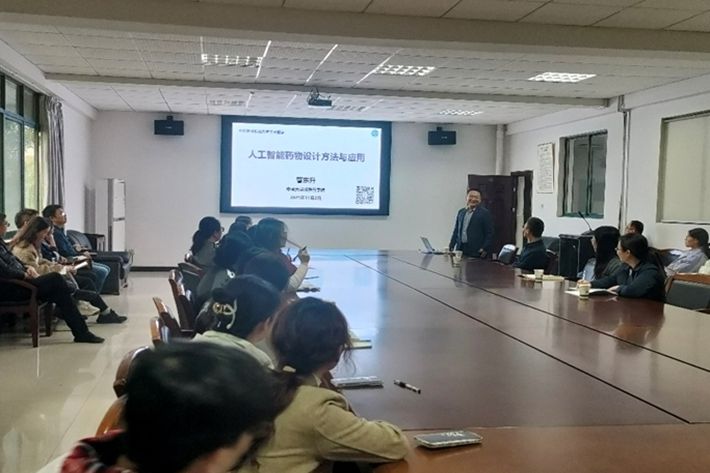 曹东升教授作了题为“人工智能药物设计方法及应用研究”的报告,系统阐述了人工智能在药物分子设计、智能分子生成和快速优化以及化学信息学领域的前沿应用。曹教授重点介绍了团队在分子生成模型、药效预测算法及AI驱动的药物筛选平台方面的研究成果,展示了人工智能技术与生命健康科学深度融合的广阔前景。