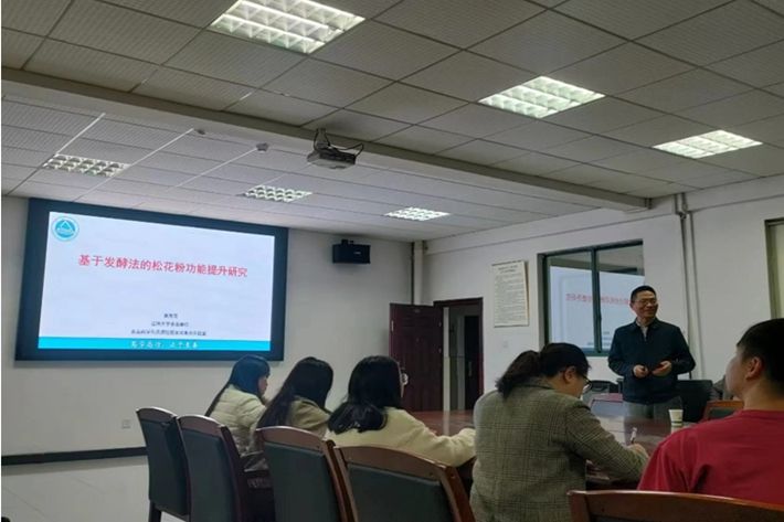 曾茂茂教授以“基于发酵法的松花粉功能提升研究”为题,介绍了其团队在食品功能组分结构表征及发酵技术在功能食品开发中的最新研究进展。报告中,曾教授结合松花粉的营养特性与功能活性,通过发酵工艺优化探讨其功能因子活化与生物利用度提升的机制,展示了食品科学在促进健康食品产业高质量发展中的重要作用。