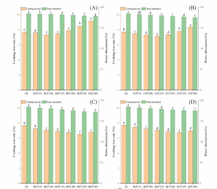 栗子面条营养健康,但未经处理的栗子会对面条质量产生负面影响。该研究探讨了栗子经过热处理(烹饪、微波、烘烤)对栗面质量的改善效果。结果显示,热处理增强了栗子的溶解性、膨胀力和糊化特性。与未处理的栗子相比,经过热处理的栗子面条降低了淀粉的消化率。特别是加入25%微波处理栗子后,面条具有极佳的烹饪性、感官性、质感和拉伸性能。FTIR和SDS蛋白提取结果进一步表明,减少25%微波处理栗子的比例,通过优化蛋白质二级结构、增强分子聚集和加强面筋网络连续性,提升了栗子面条的整体质量。总体而言,尤其是微波热处理,可以作为优化栗子面条质地和淀粉消化性的理想策略。
